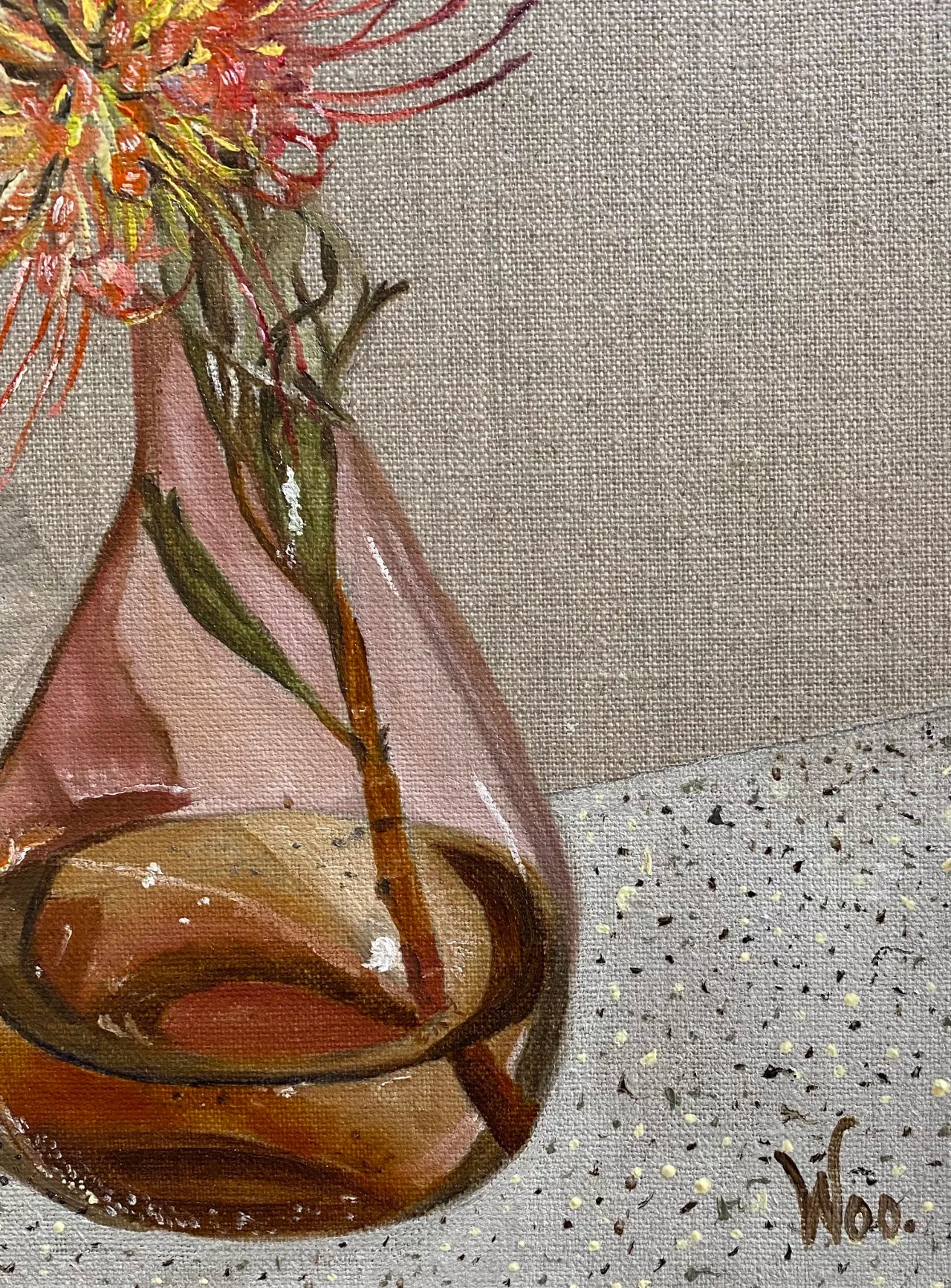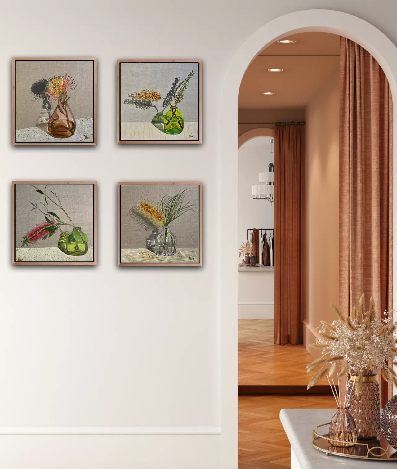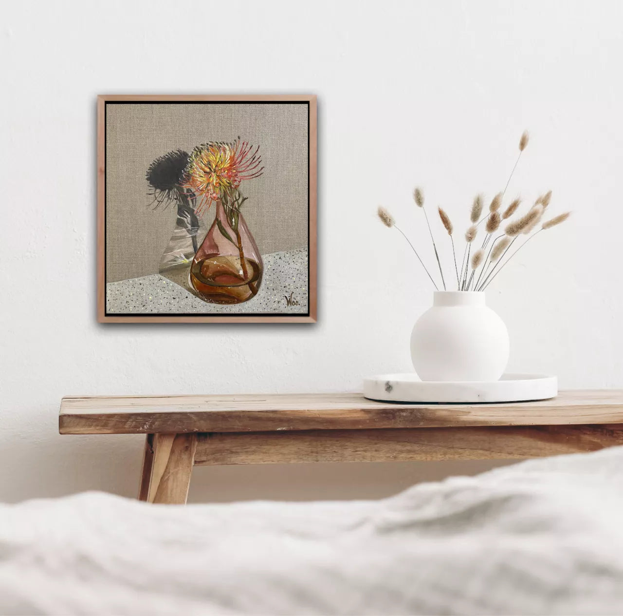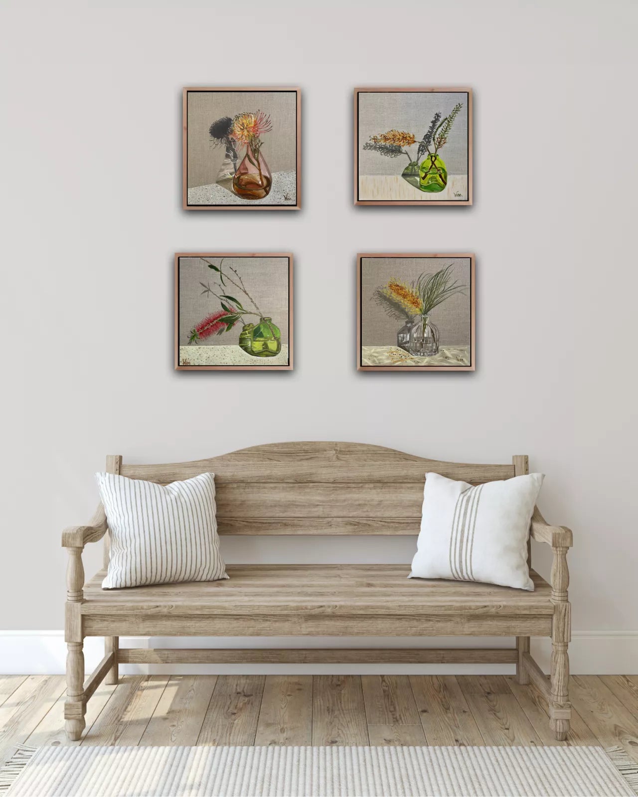 Australian Natives have started to feature a lot in my artwork, the Grevillia flower has such an interesting mix of sturdiness and delicacy, coupled with a love of the reflection of glass I just had to add it to my collection of liccle Australian Natives. Pair them with others in my collection to make a bold statement.