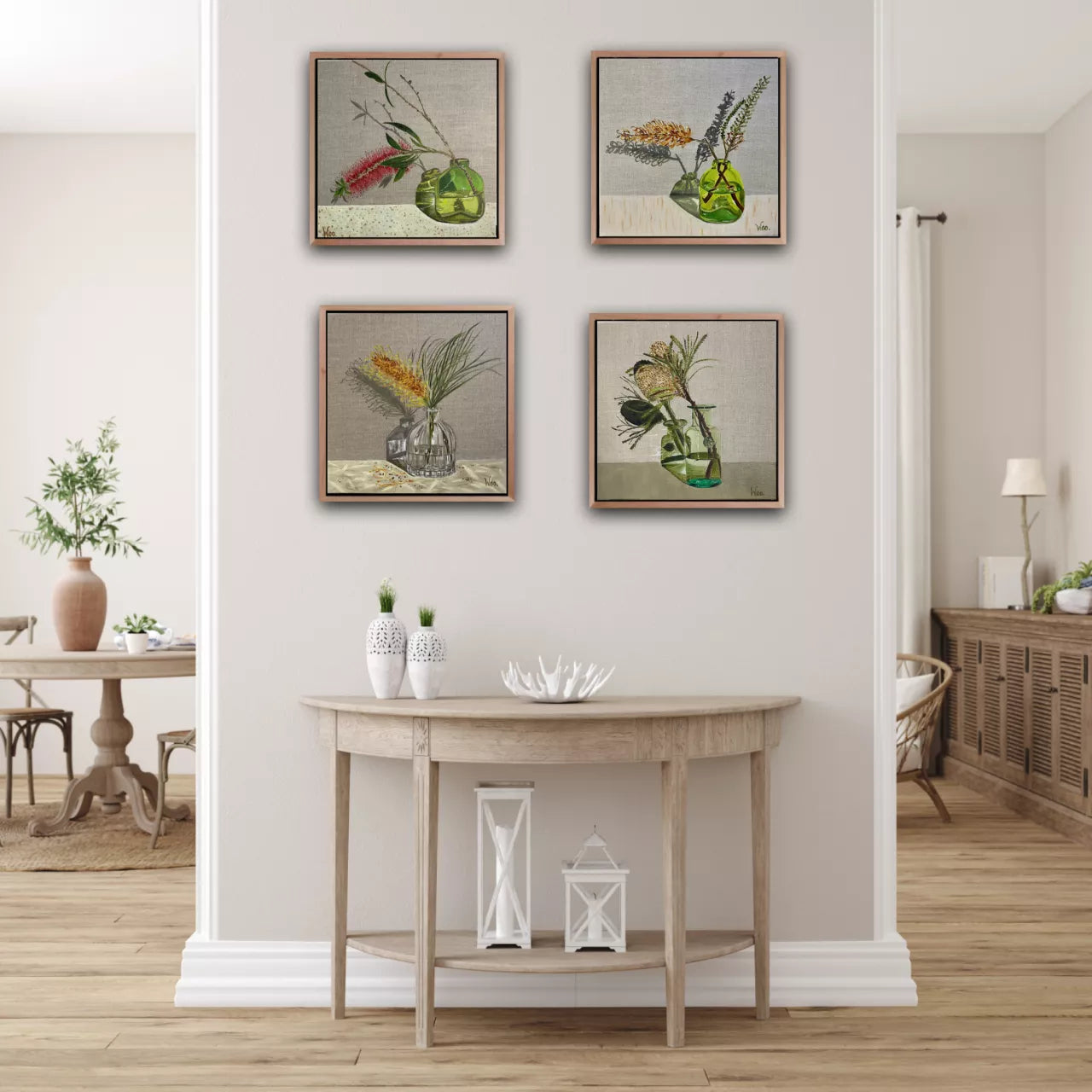 The Fluted Vase - My fascination with glass vessels and light continues, I love the way the light creates beautiful reflections. Paired with an Aussie native, what is not to love. Framed in a beautiful Tasmanian oak float frame.